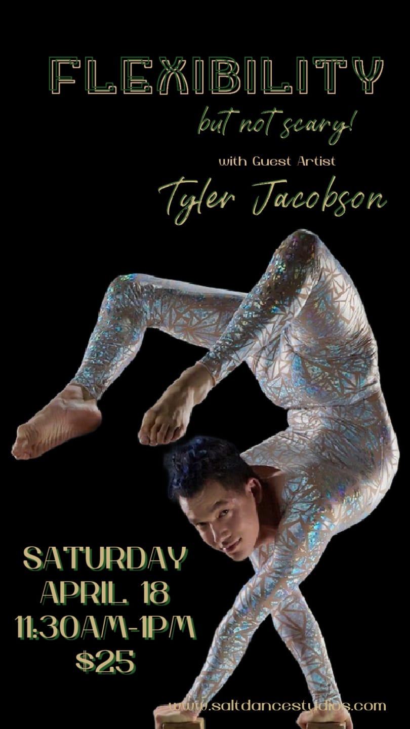 Join Circus Performer Tyler Jacobson for his signature Flexiblity - but not scary workshop! This workshop is tailored towards students who want to learn to understand how to safely develop flexibility in adult bodies. More than just a guided stretch class, this workshop will teach students fundamentals of anatomy as well as supportive conditioning to improve their mind-body connections. These principles are suitable for students of all levels.